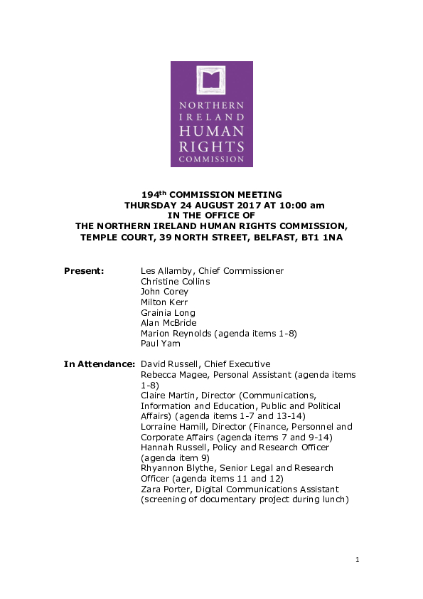 Minutes of the 194th Commission Meeting held on 24 August 2017.