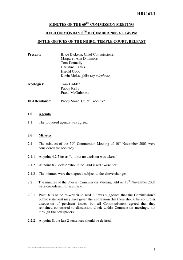 Minutes of the 60th Commission Meeting, held on 8 December 2003.