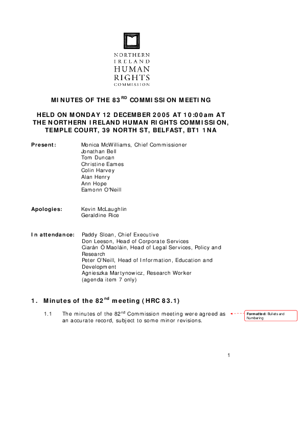 Minutes of the 83rd Commission Meeting, held on 12th December 2005.