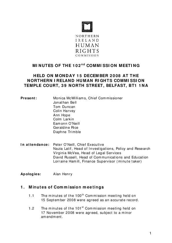 102nd Commission Minutes 15th December 2008