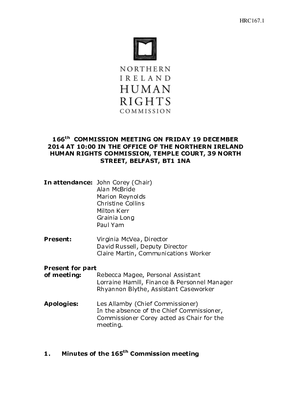 166th Commission Minutes 19th December 2014