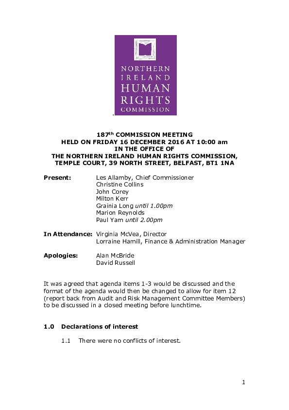 Minutes of the 187th Commission meeting held on 16 December 2016.