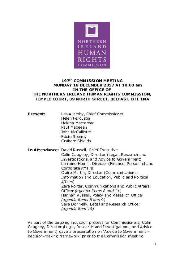 Minutes of the 197th Commission Meeting held on 18 December 2017.