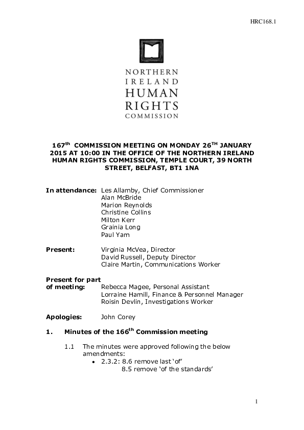 167th Commission Minutes 26th January 2015