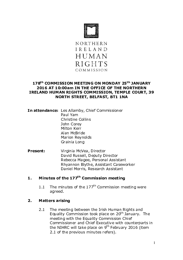 178th Commission Minutes 25th January 2016