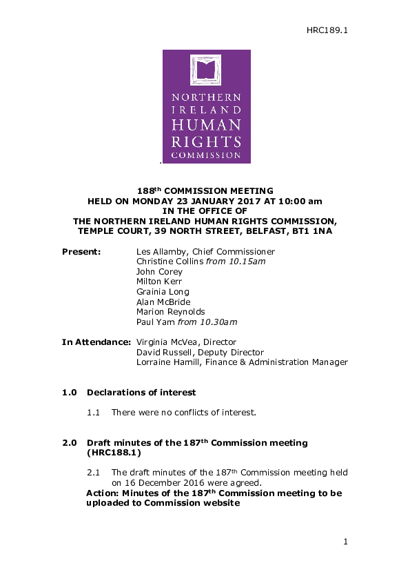Minutes of the 188th Commission meeting held on 23 January 2017.