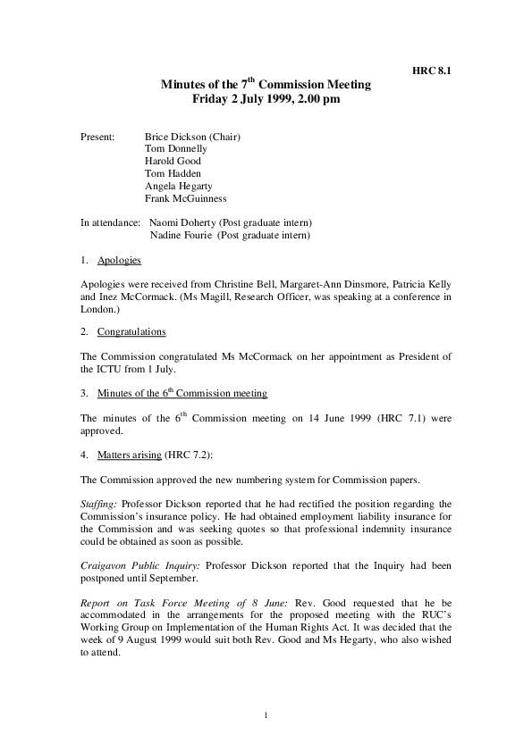 7th Commission Minutes 2nd July 1999