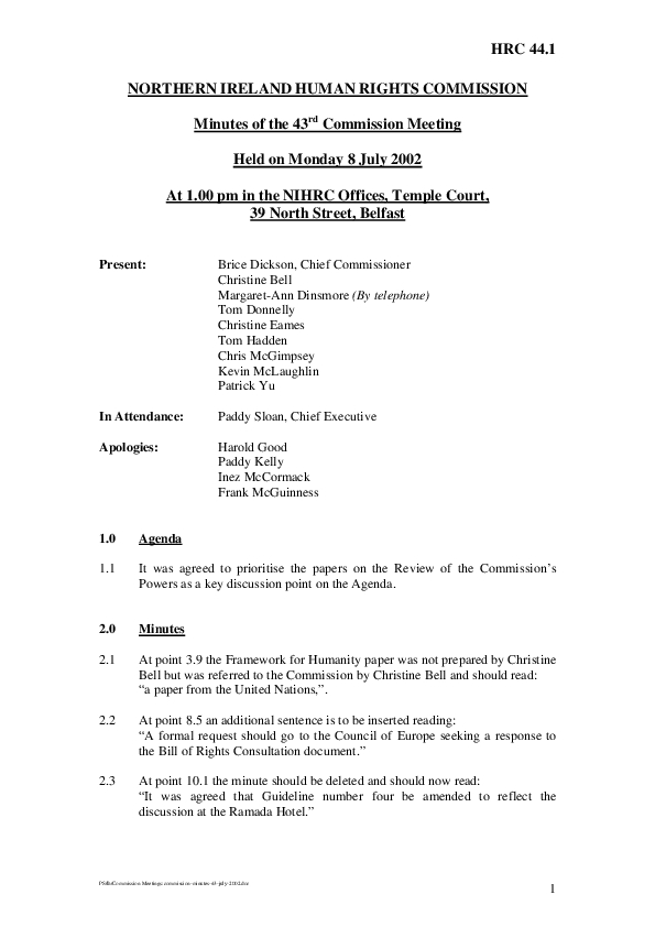 Minutes of the 43rd Commission Meeting, held on 8 July 2002.