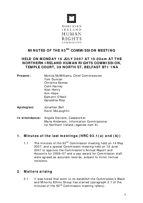 Minutes of the 93rd Commission Meeting, held on 16 July 2007.