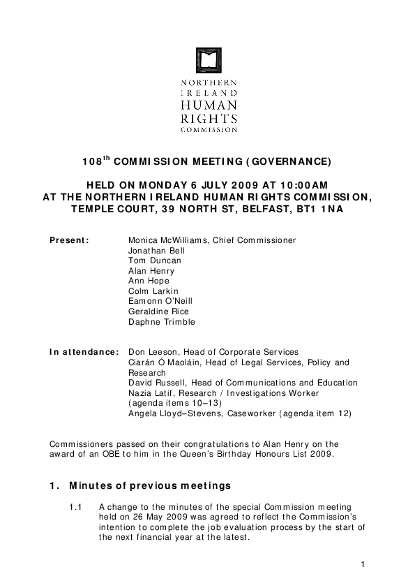 108th Commission Minutes 6th July 2009