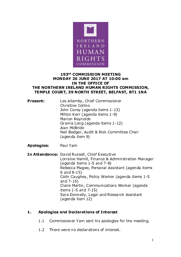 Minutes of the 193rd Commission Meeting held on 26 June 2017.