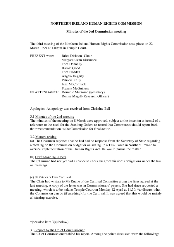 Minutes of the 3rd Commission Meeting, held on 22 March 1999.