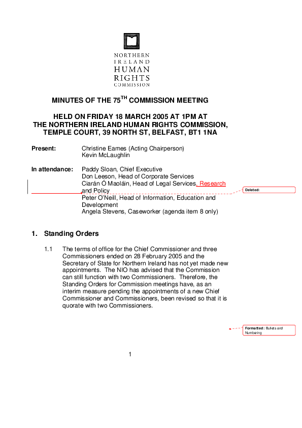 Minutes of the 75th Commission Meeting, held on 18th March 2005.