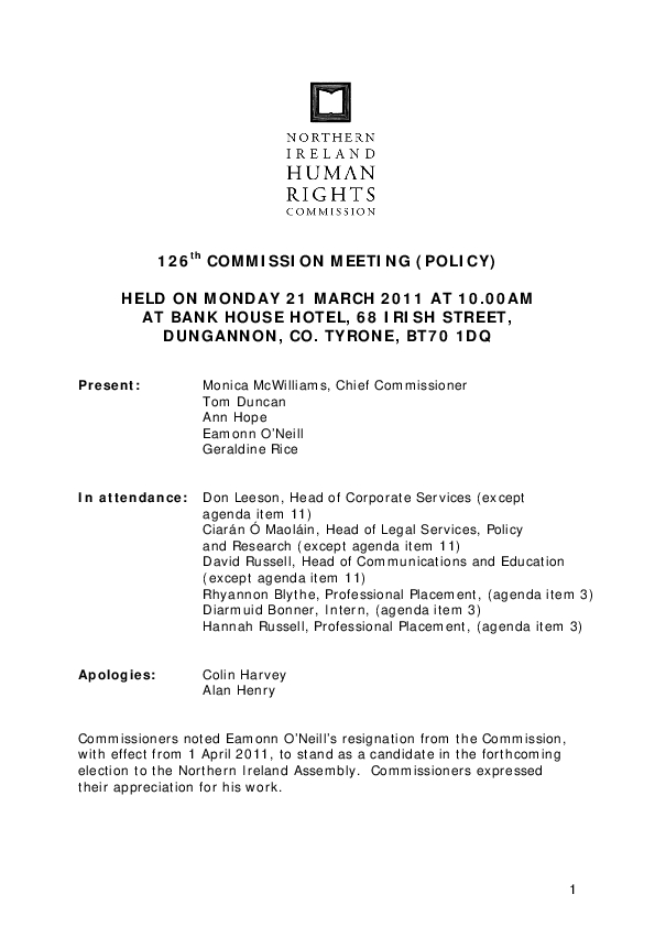 Minutes of the 126th Commission Meeting, held on 21 March 2011.