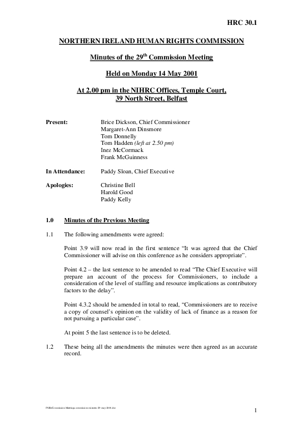 29th Commission Minutes 14th May 2001