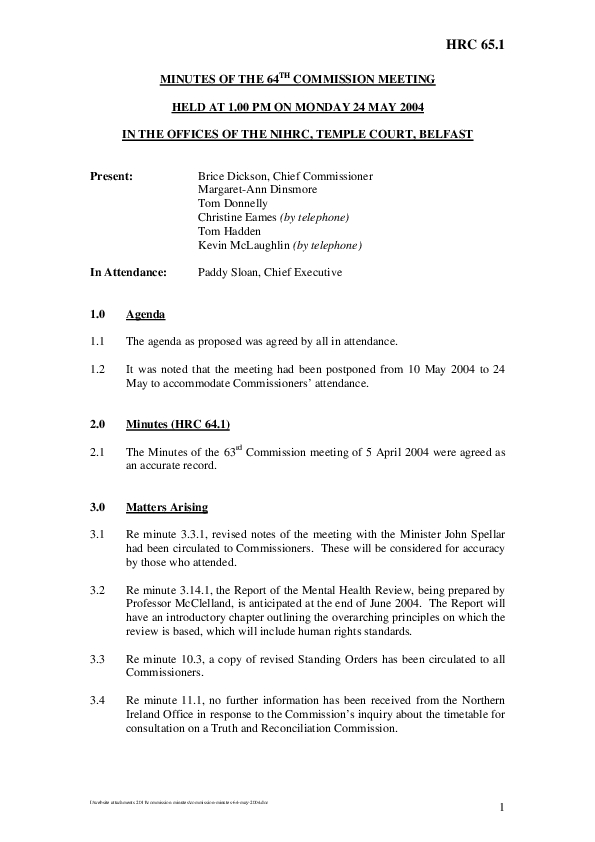 64th Commission Minutes 24th May 2004