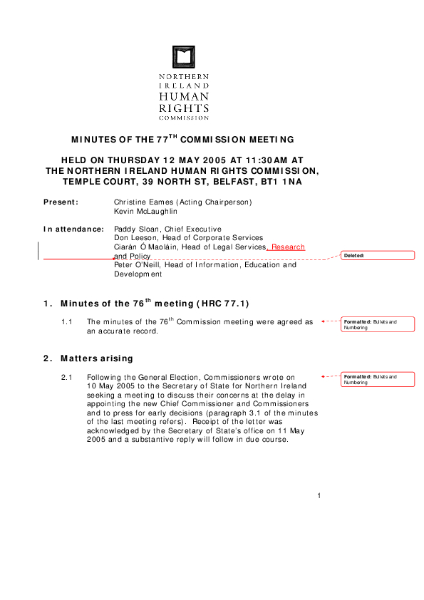 Minutes of the 77th Commission Meeting, held on 12th May 2005.