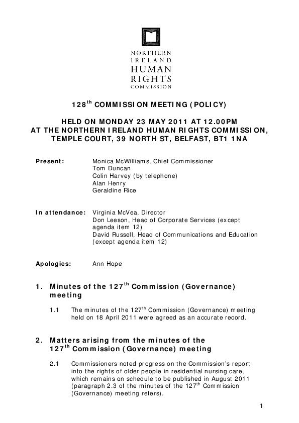128th Commission Minutes 23rd May 2011