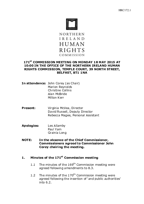 171st Commission Minutes 18th May 2015