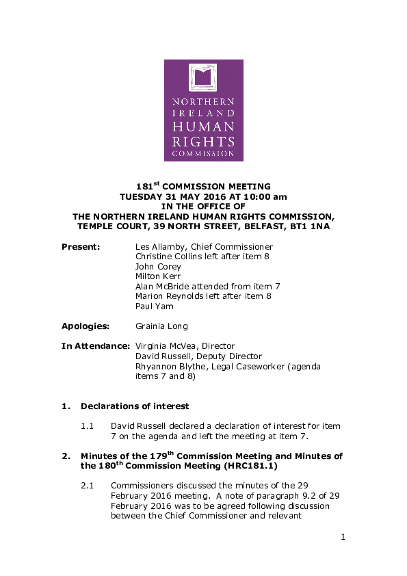 181st Commission Minutes 31st May 2016