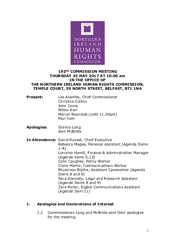 Minutes of the 192nd Commission Meeting held on 25 May 2017.