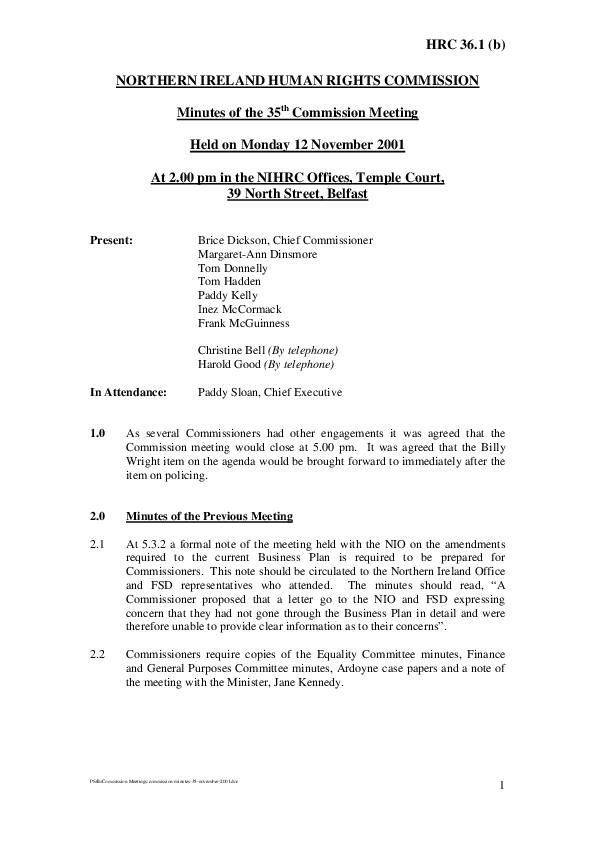 Minutes of the 35th Commission Meeting(1), held on 12 November 2001.