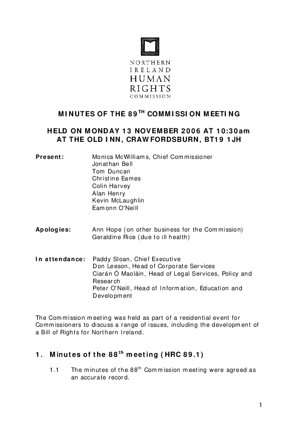 Minutes of the 89th Commission Meeting, held on 13 November 2006.