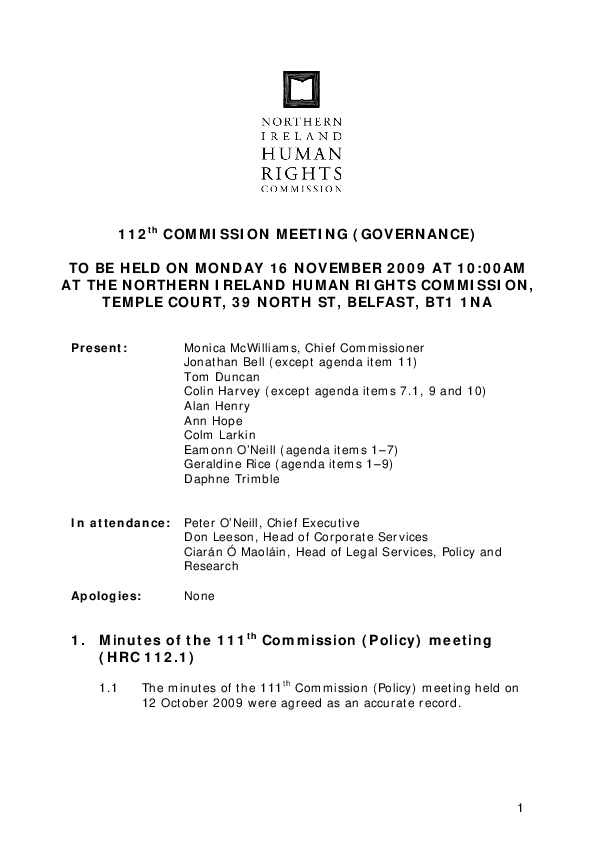 112th Commission Minutes 16th November 2009