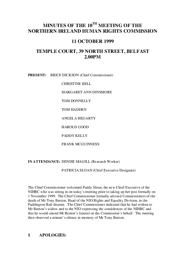 Minutes of the 10th Commission Meeting, held on 11 October 1999.