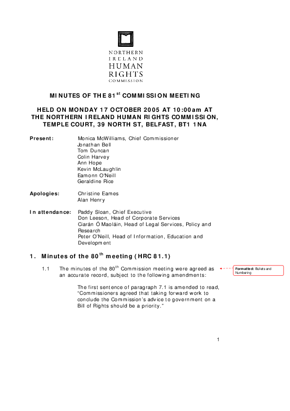 Minutes of the 81st Commission Meeting, held on 17th October 2005.
