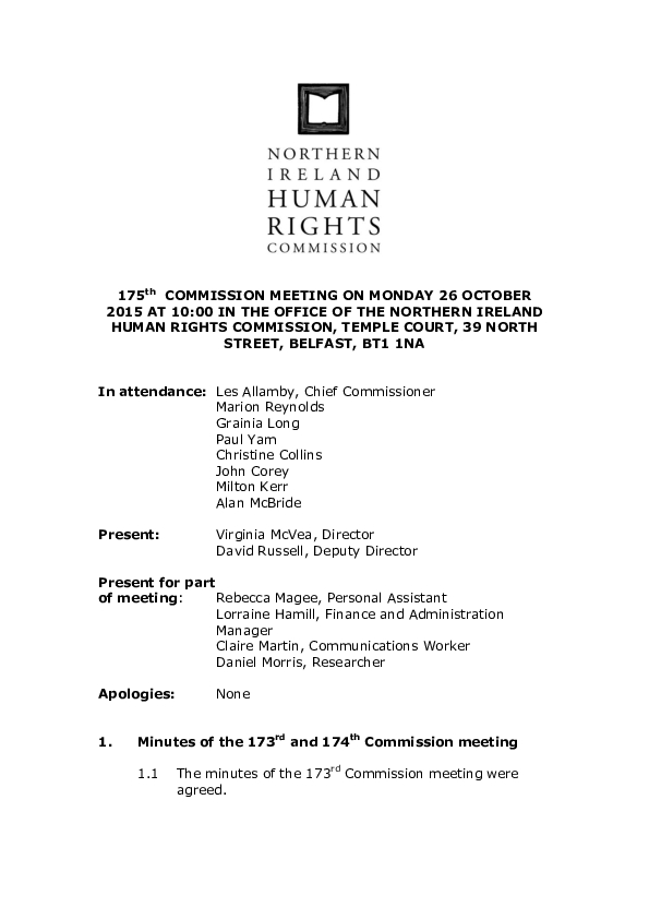 175th Commission Minutes 26th October 2015