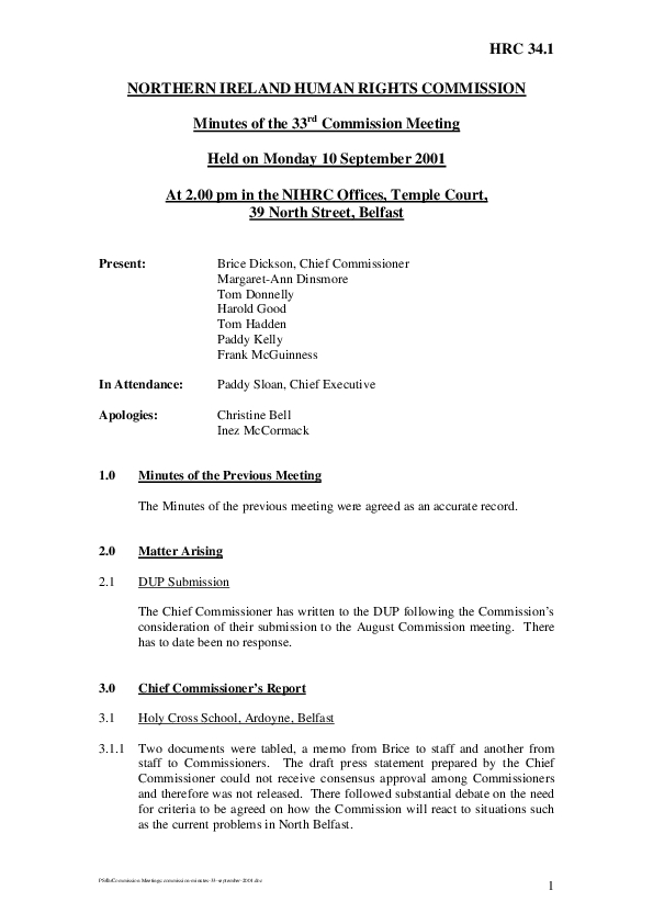 33rd Commission Minutes 10th September 2001