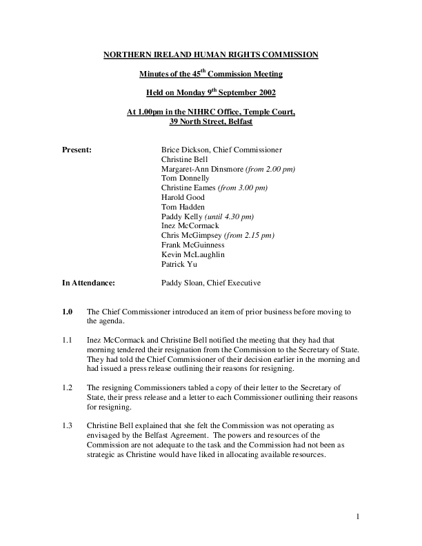 45th Commission Minutes 9th September 2002