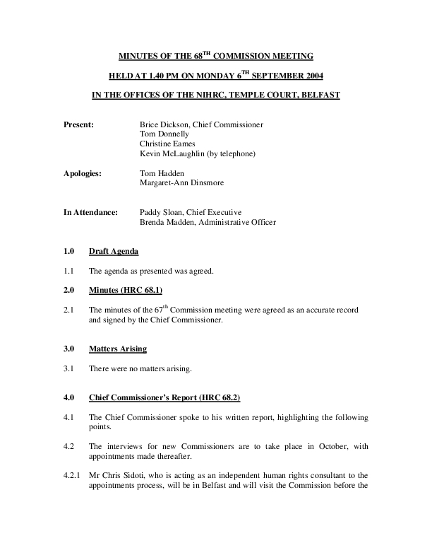 68th Commission Minutes 6th September 2004