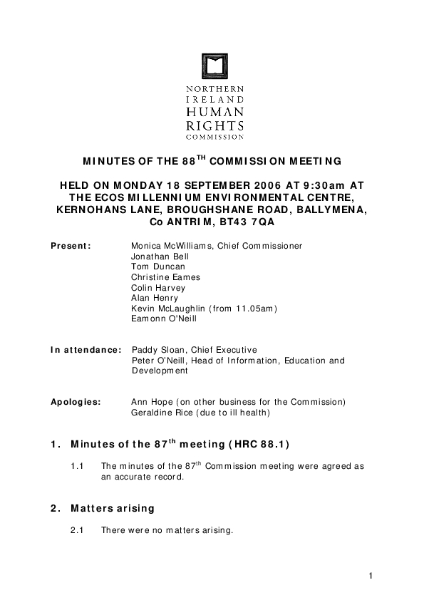 Minutes of the 88th Commission Meeting, held on 18 September 2006.