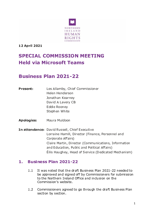 The Northern Ireland Human Rights Commission held a Special Commission Meeting on 12 April 2021.