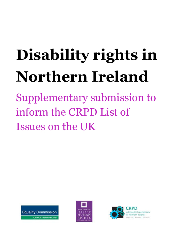 This submission has been drafted jointly by the Equality Commission for NI and the NI Human Rights Commission in furtherance of their role as the “Independent Mechanism” in Northern Ireland (NI) to promote, protect and monitor the implementation of the United Nations Convention on the Rights of Persons with Disabilities (UNCRPD).