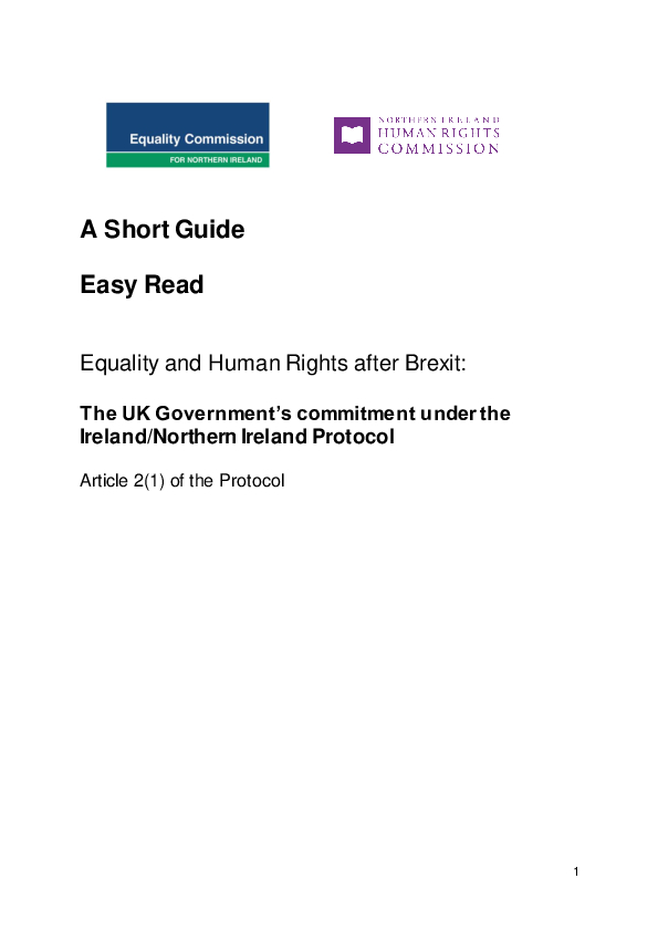 Easy Read - A Short Guide Equality and Human Rights after Brexit: The UK Government’s commitment under the Ireland/Northern Ireland Protocol Article 2(1) of the Protocol