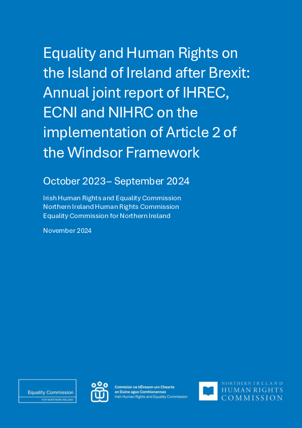 This is the third activity report of the Northern Ireland Human Rights Commission, Equality Commission for Northern Ireland, and the Irish Human Rights and Equality Commission, which details the works of the Commissions on the implementation of Article 2 of the Windsor Framework from October 2023 - September 2024.