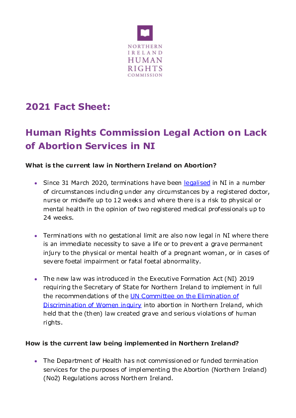 Fact sheet: Human Rights Commission Legal Action on Lack of Abortion Services in NI