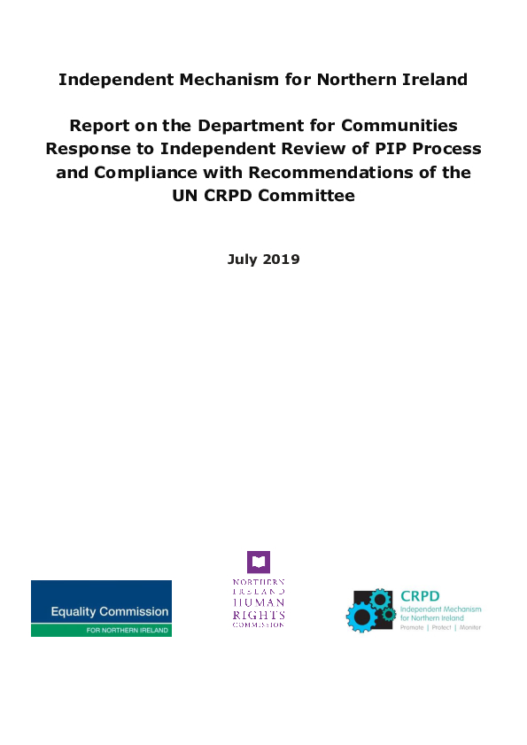 Independent Mechanism for Northern Ireland Report on the Department for Communities Response to Independent Review of PIP Process and Compliance with Recommendations of the UN CRPD Committee