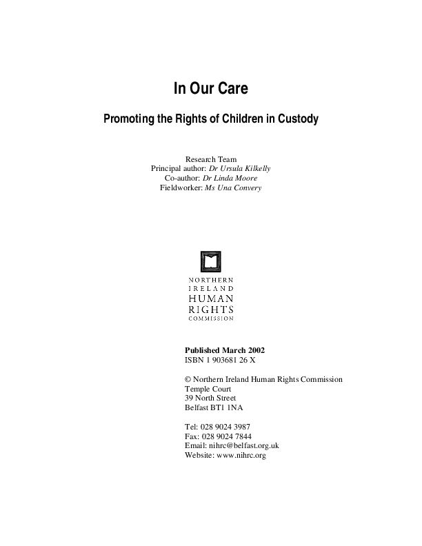 The Northern Ireland Human Rights Commission exists to protect and promote the rights of all people in Northern Ireland. The Commission has committed itself to prioritising the rights of the most vulnerable in society such as the young, the old, the homeless and people with disabilities. It is widely recognised that children living in institutions – such as those in custody – are a particularly vulnerable group. Because of this they have specific rights under international law. As a society we all have a responsibility towards them.