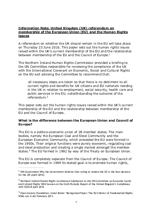 Information Note: UK referendum on membership of the EU and the Human Rights issues