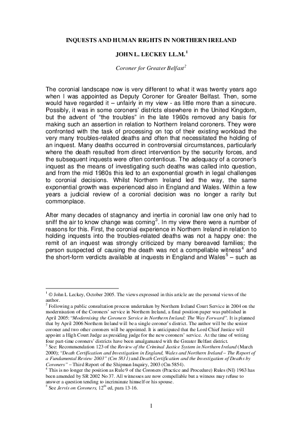 Inquests and Deaths in Northern Ireland