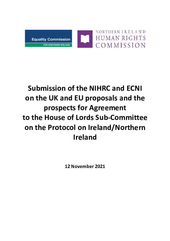 NIHRC and ECNI submission on the UK and EU proposals and the prospects for Agreement to the House of Lords Sub-Committee on the Protocol on Ireland/Northern Ireland