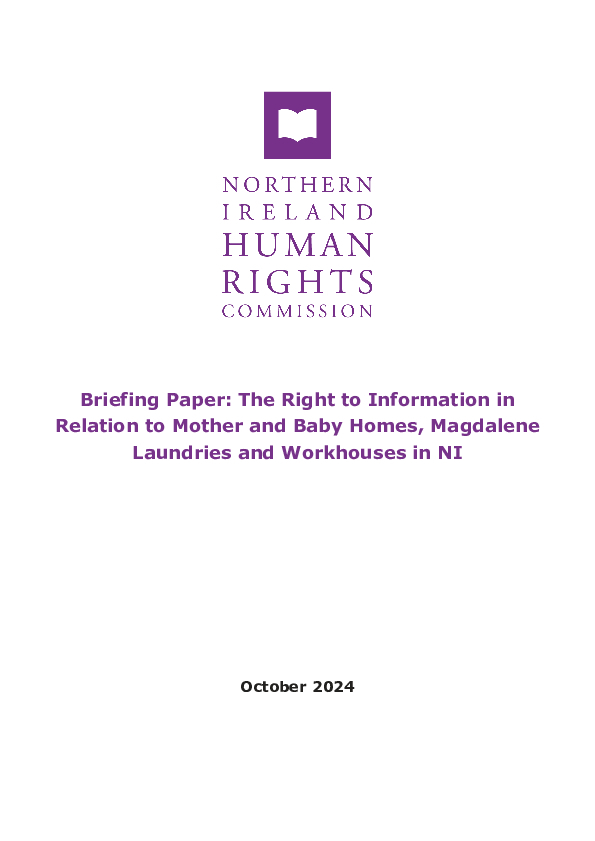NIHRC Briefing Paper on The Right to Information in Relation to Mother and Baby Homes, Magdalene Laundries and Workhouses in NI. The NIHRC provided this briefing as an accompaniment to oral evidence provided to the Executive Office Committee on Wednesday, 9th October 2024.