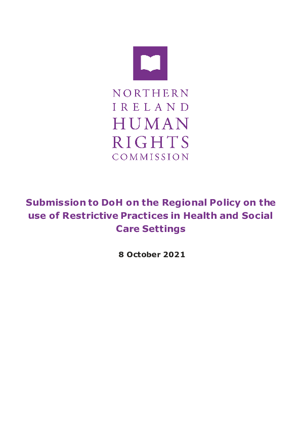 NIHRC consultation response to Department of Health's Regional Policy on the use of Restrictive Practices in Health and Social Care Settings