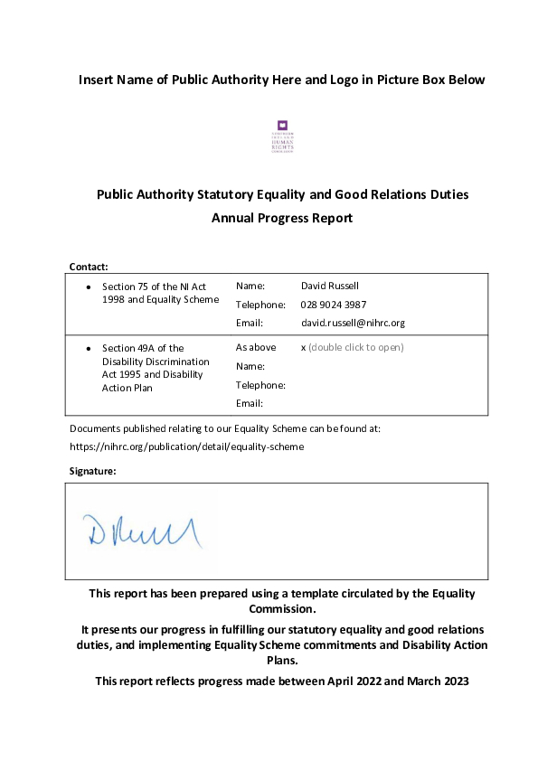 The NIHRC Equality Scheme Progress Report, March 2023, can be downloaded below.
