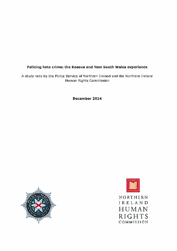 Policing Hate Crime: the Kosovo and New South Wales Experience. A study note by the Police Service of Northern Ireland and the Northern Ireland Human Rights Commission.