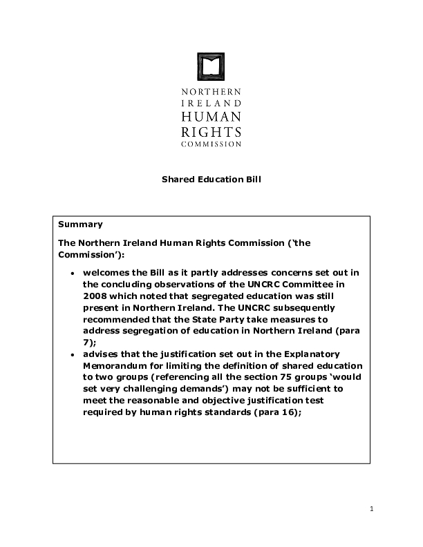 This document contains the Commission’s response to and recommendations on the Shared Education Bill.